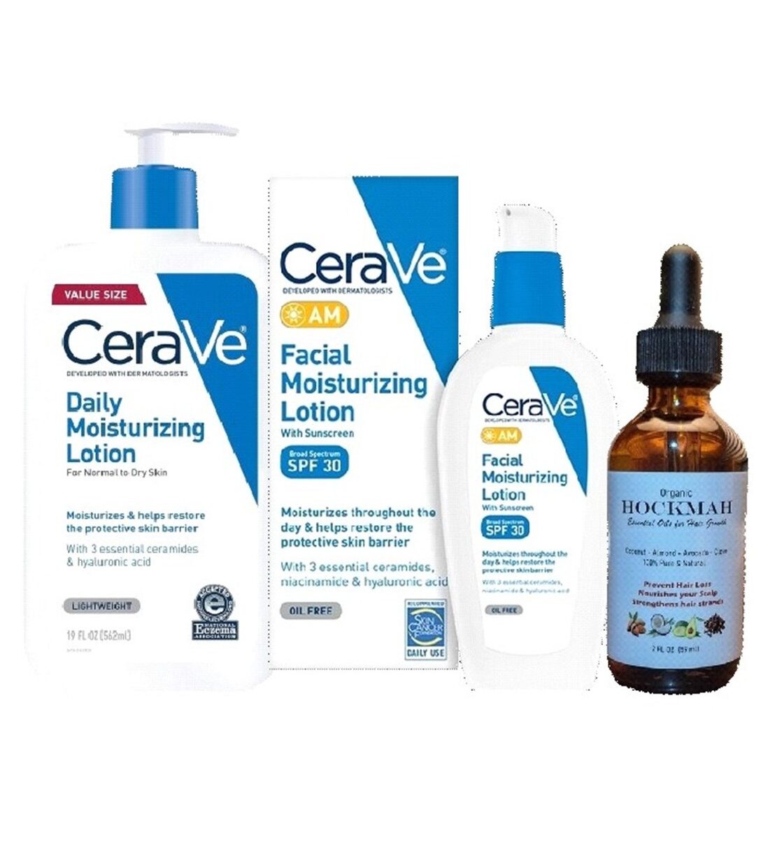 CERAVE DAILY MOISTURIZING LOTION, CERAVE AM FACIAL MOISTURIZING LOTION, ORGANIC HOCKMAH SCALP & HAIR STRENGTHENING OIL – (KIT ATLANTIC)